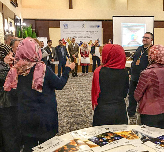 當時他的教材是英文的,但在2016年的時候,他收到一份阿拉伯語和庫爾德語的教材。 「自從我收到庫爾德語的教材,我便設法訓練情報官員在他們的學院擔任人權培訓員,並改變我的同事們對於《世界人權宣言》的看法,改變他們和公司的各種行為。」