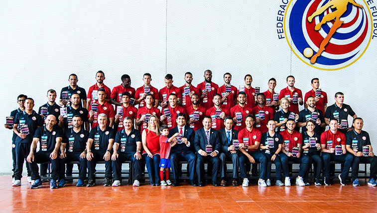 下一個行動則是透過哥斯大黎加的全國運動:足球。 他們向哥斯大黎加國家足球聯盟總裁進行簡報,他很快加入我們的行列。 在費歇歐女士的幫助下,客製化的小冊子有著足球球員的照片,以及完整的30條人權。 活動在國家隊的告別賽後正式展開,球員們即將前往俄國參加2018年FIFA世界盃足球賽。 由哥斯大黎加總統,卡洛斯.阿爾瓦拉多.克薩達讓活動起跑。 總統本人、每位球員,以及出席嘉賓全都收到全新的小冊子。 有了這些小冊子,阿里亞斯博士和費歇歐女士加入哥斯大黎加青少年人權協會志工行列,在哥斯大黎加國家足球運動場,將手冊發送給前來觀賞告別賽的球迷。 將數字加總、他們現在已發送出128,000多本小冊子。